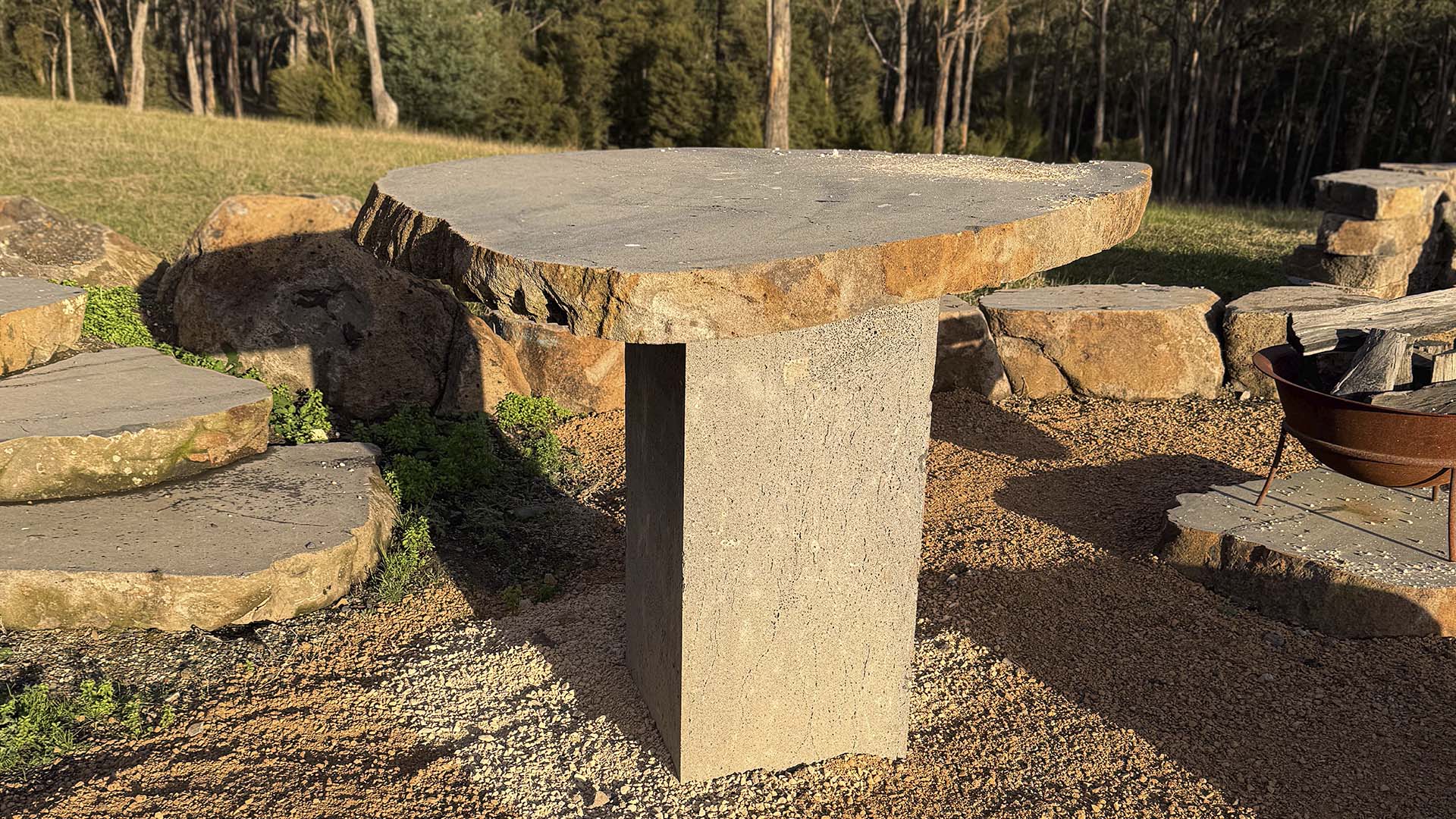 Compact in form but rich in character, the Raw Edge Table features a smooth top supported by a single stone pillar. Its organically finished edge brings a natural, sculptural quality to smaller outdoor spaces, perfect for quiet moments or casual gatherings.